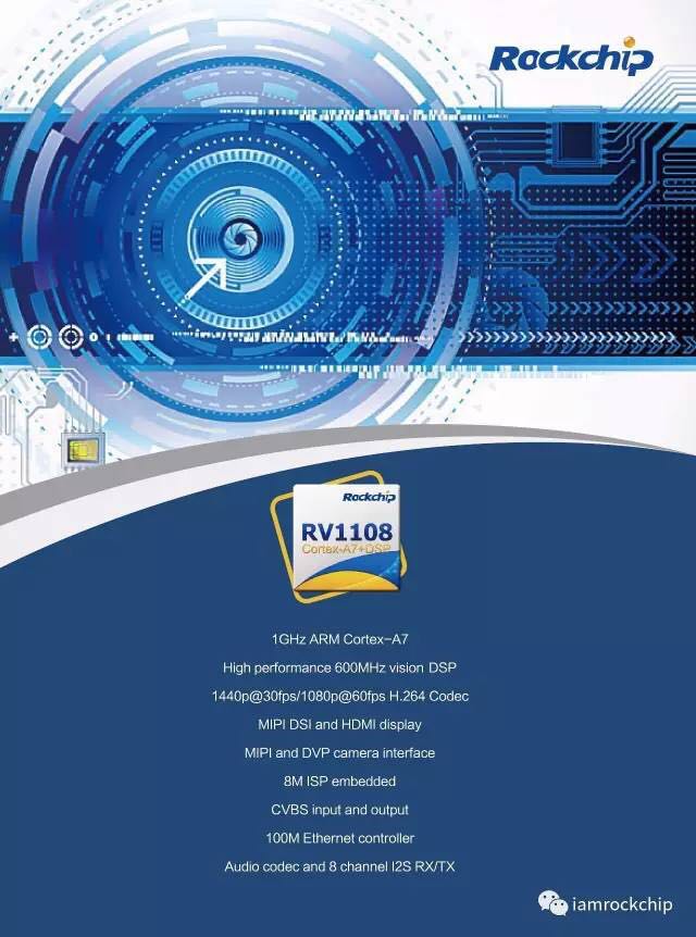The information shows that the intelligent visual development platform RV1108 with built-in high-performance DSP uses key technologies such as intelligent image processing, achieving revolutionary evolution on the efficient intelligent vision and image perception.
