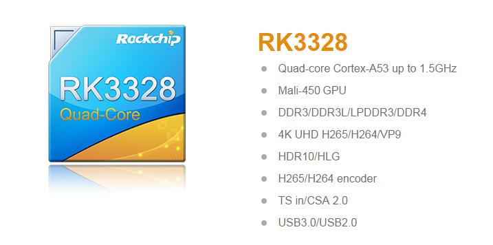 Upgraded RK3328 positioned to medium and high-end solution supports USB3.0 and Giga ethernet, and technically solves the problem of real-time transmission of UHD videos.